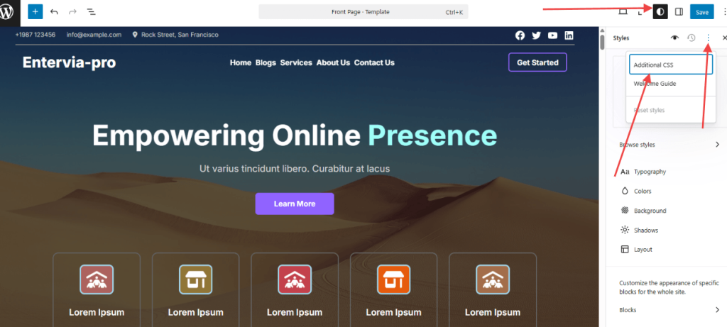 • Click on it, and you’ll see a Additional CSS.
