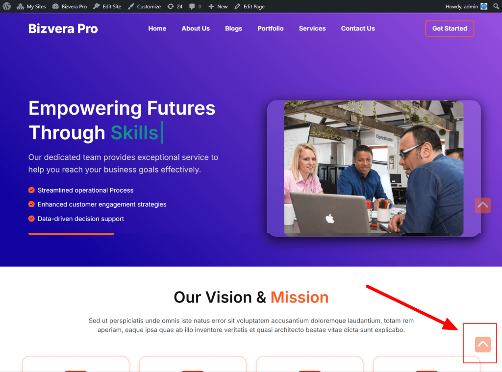 Improve site usability with the built-in Scroll to Top feature. As users scroll down the page, a convenient button appears, allowing them to quickly return to the top with a single click. It’s a simple yet effective way to enhance navigation—especially on long pages—making your site more user-friendly and professional.